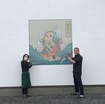 最大24台駐車できます。お店の外壁には可愛いアマビエの絵を飾っています。記念に写真を撮影するのもおすすめです!